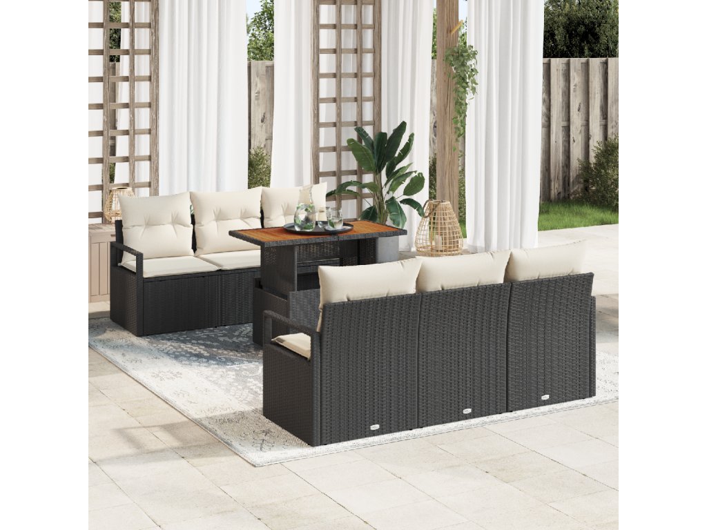 Sada zahradních pohovek s polštářem 7 pcs Černá a krémová