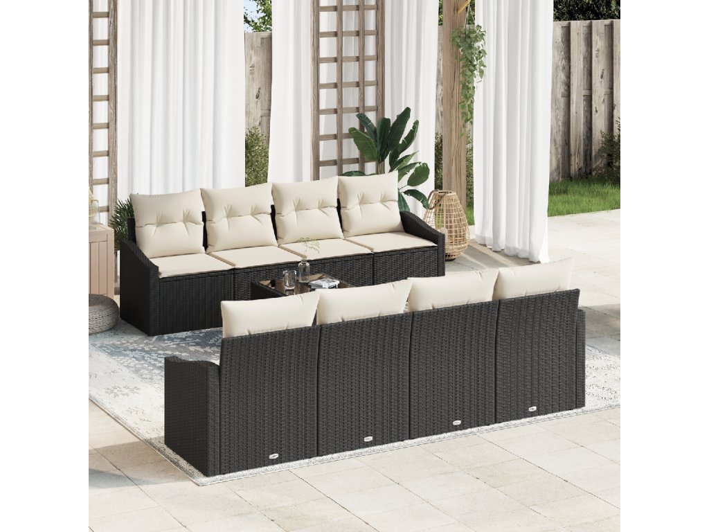 Set pohovek s polštářem 7 pcs Černá a krémová polyratan