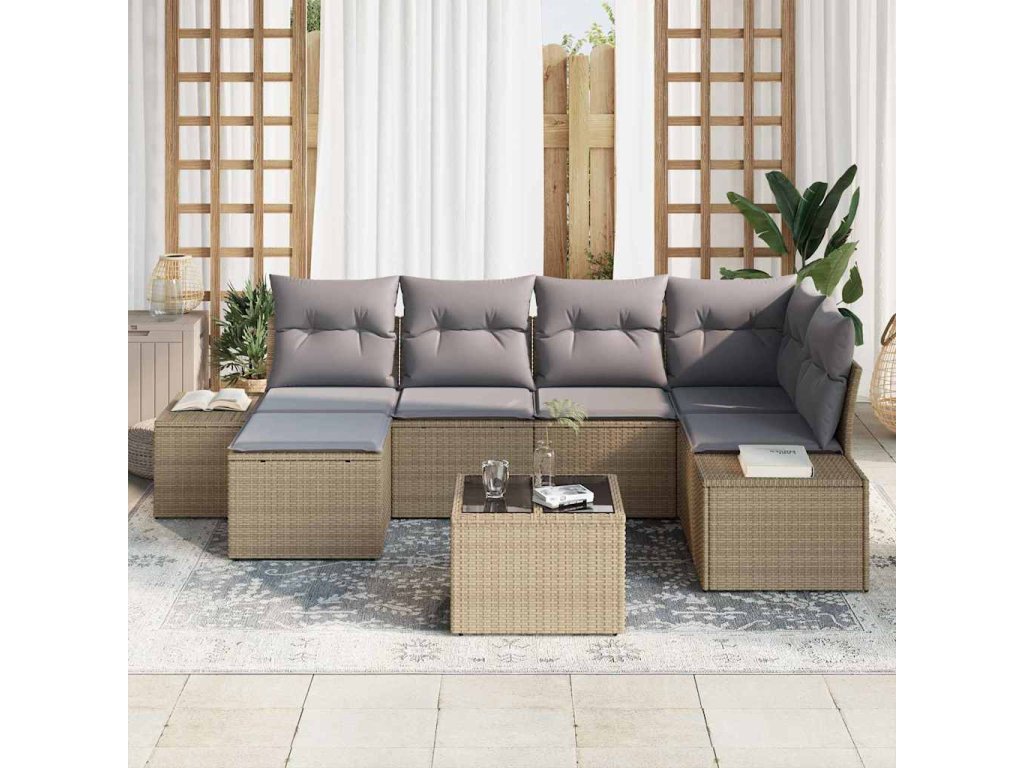 Sada zahradních pohovek 6 pcs Béžová a Světle šedá polyratan