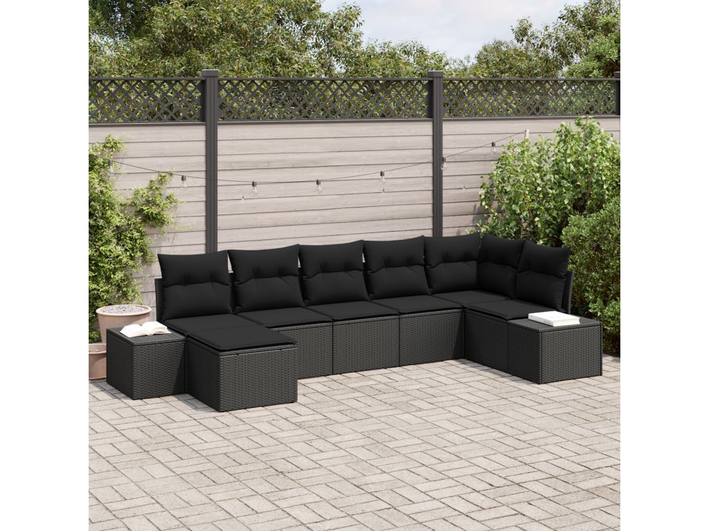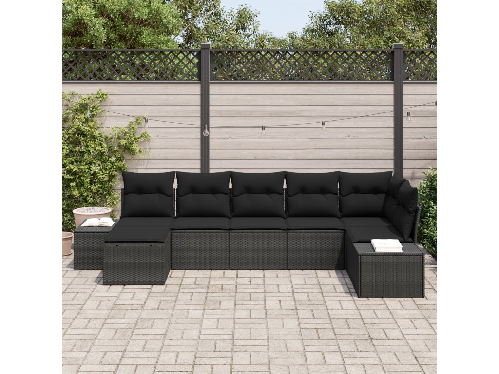 Sada zahradních pohovek s polštářem 7 pcs Černá polyratan