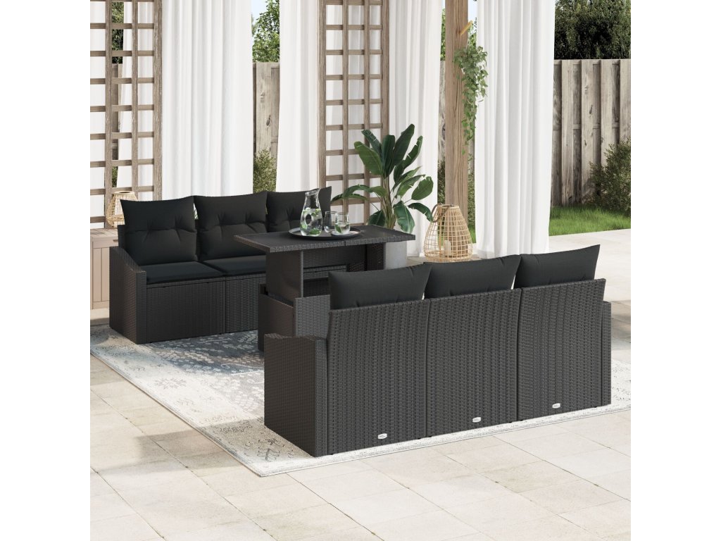Sada zahradních pohovek s úložištěm 7 pcs Černá polyratan