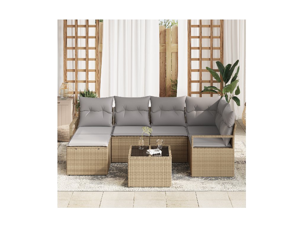 Set pohovek s polštářem 7 pcs Béžová polyratan