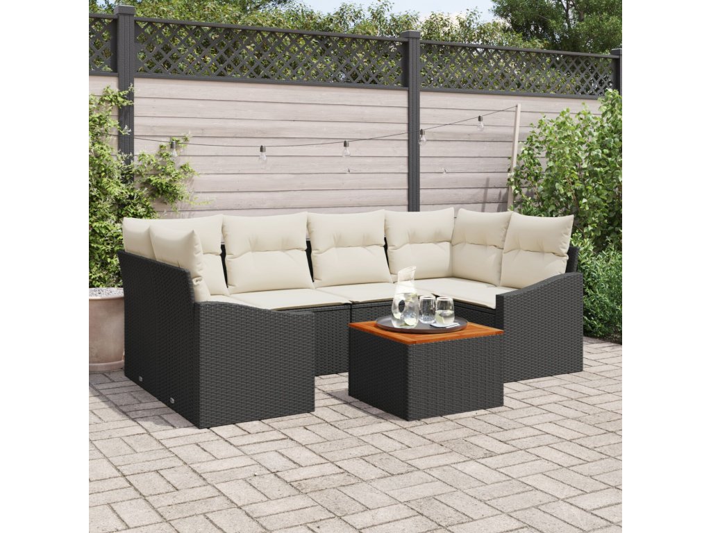 Sada zahradních pohovek s polštářem 7 pcs Černá Poly ratan