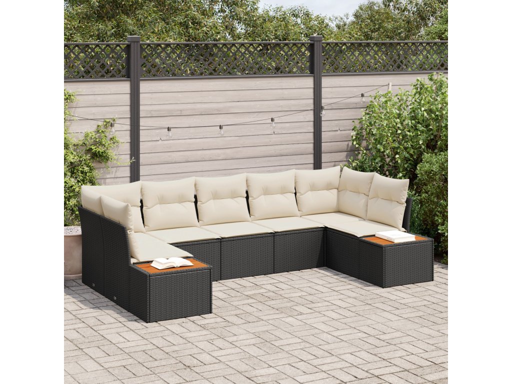 Prémiový poly ratan: Tato sada pohovek je z odolného poly ratanu, který odolává UV paprskům a povětrnostním vlivům. Zajišťuje, že dlouho vypadá dobře a nedegraduje. Kromě toho, že neabsorbuje vlhkost, je snadno udržovatelný a hodí se k různým dekoračním stylům. Pohodlné polštáře: K dispozici jsou široké měkké polštáře z polyesteru, nejenže vám zajistí pohodlí, ale také dlouho vydrží. Tyto polštáře jsou odolné vůči blednutí a špatnému počasí, což znamená, že si pohovky ponechají svůj vzhled. Budou krokem k pohodlnému odpočinku na slunných odpoledních nebo při intimitě setkáních. Flexibilní uspořádání: Tato zahradní sada je koncipována pro snadné přizpůsobení se vašim prostorům. Umožňuje vytvářet různé kombinace - ať už jako jednu velkou pohovku nebo více menších. Uspořádání se přizpůsobí různým podmínkám, takže je ideální pro malé i velké plochy. Stabilní rám: Ocelový rám s práškovým nástřikem zajistí pevnost bez zbytečných vizuálních elementů. Poly ratanové bočnice přidávají na pohodlí a hezky zůstávají na dotyk, i když je slunce. Nivelační nožičky u každého sedáku zajišťují stabilitu i na nerovných plochách—ideální pro zahrady nebo dlažební terasy. Jednoduchá údržba: Udržovat pohovky v dobrém stavu je snadné. Používejte ochranný potah, když si je zrovna neužíváte, a sledujte, abyste polštáře vzali dovnitř, když prší. Tato jednoduchá údržba zajistí dlouhou životnost a spokojenost s vaším venkovním nábytkem.- Barva: Černá