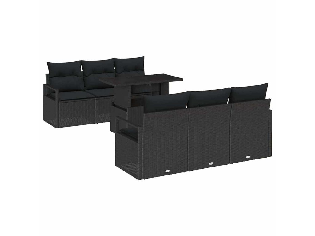 Sada zahradních pohovek s polštářem 7 pcs Černá Poly ratan
