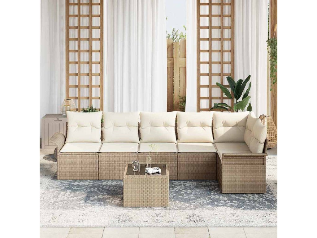 Sada zahradních pohovek s polštářem 7 pcs Béžová Poly ratan
