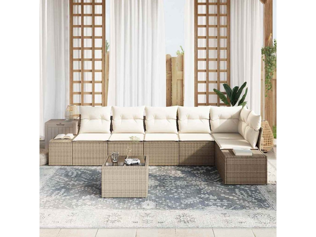 Sada zahradních pohovek s polštářem 7 pcs Béžová a krémová