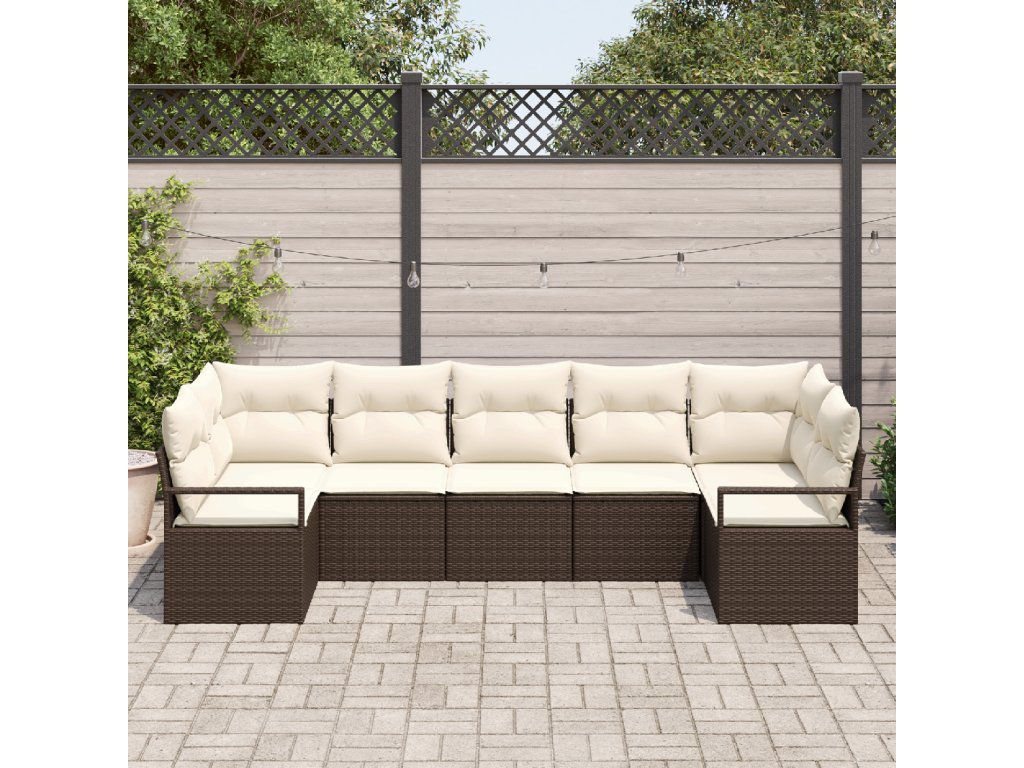 Set pohovek s polštářem 7 pcs Hnědá polyratan
