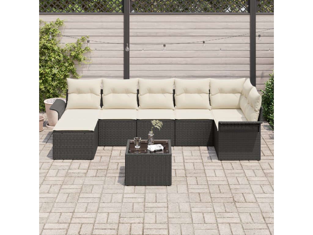 Sada zahradních pohovek s úložištěm 8 pcs Černá polyratan