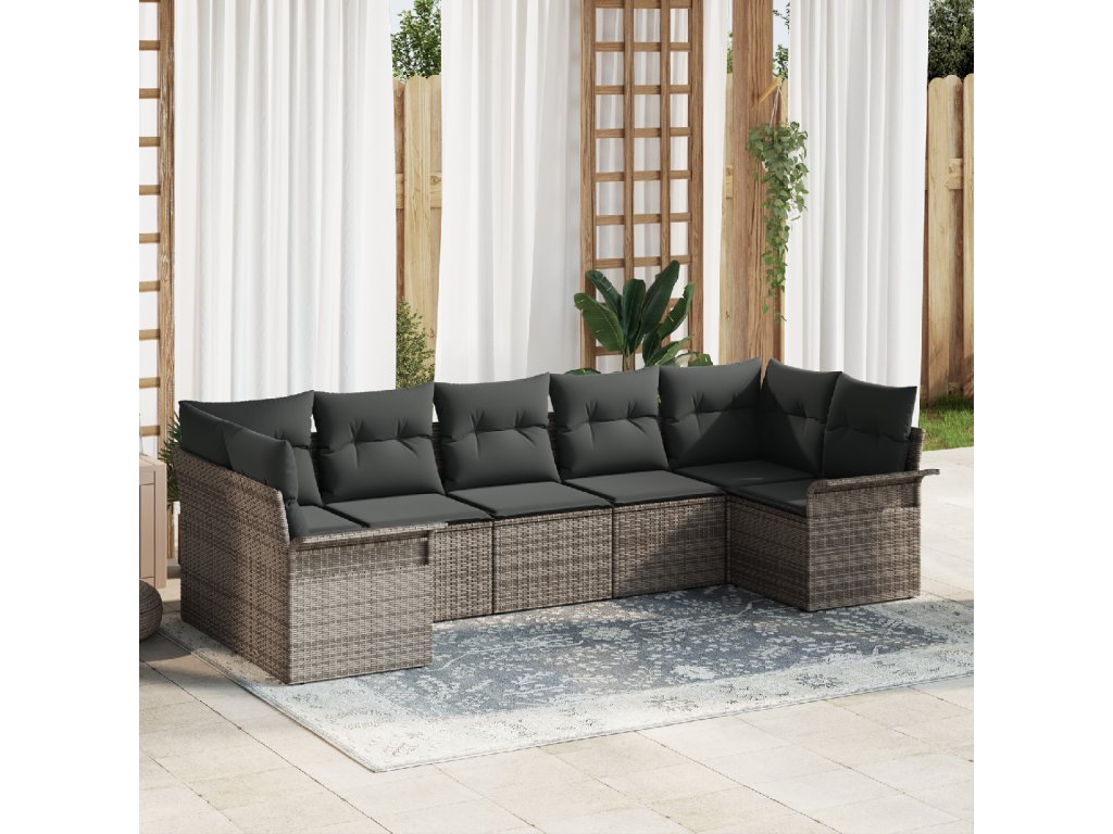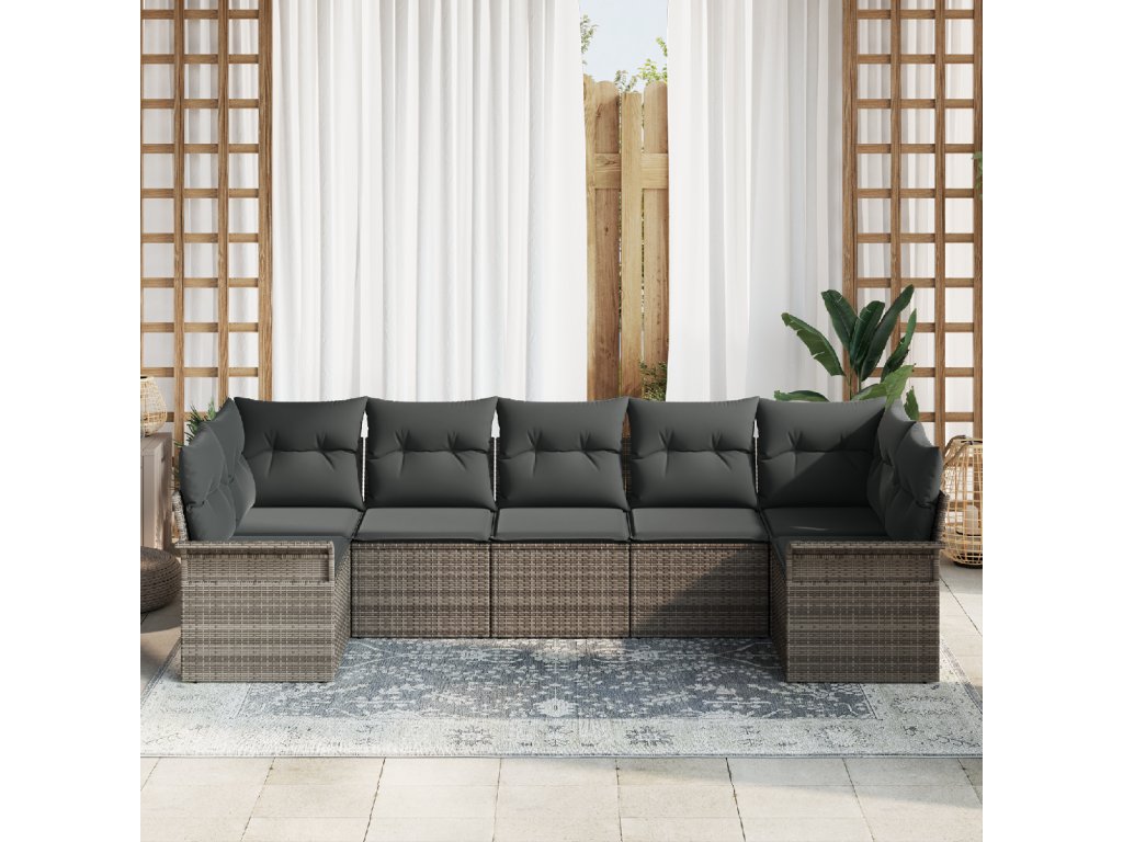 Sada zahradních pohovek s polštářem 7 pcs Šedá Poly ratan