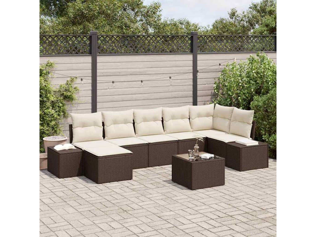 Sada zahradních pohovek s polštářem 7 pcs Hnědá polyratan