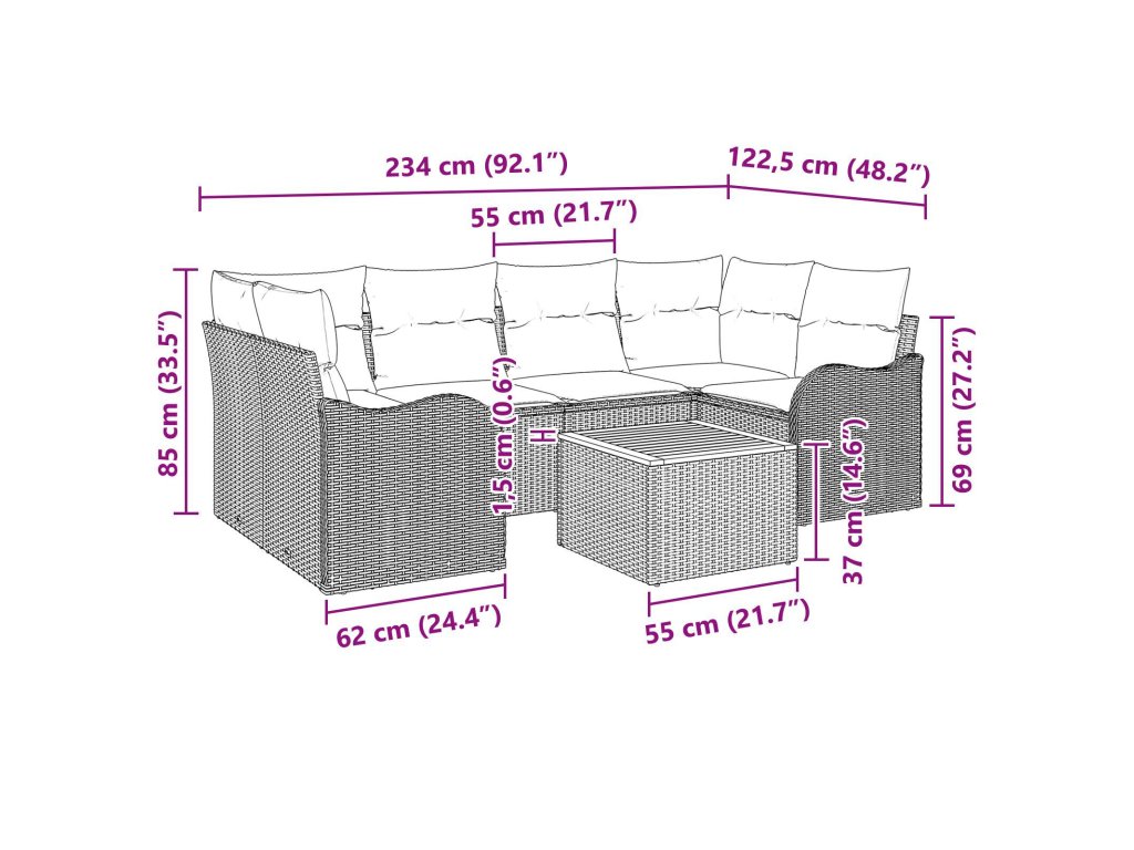 Sada zahradních pohovek 7 pcs Šedá Poly ratan