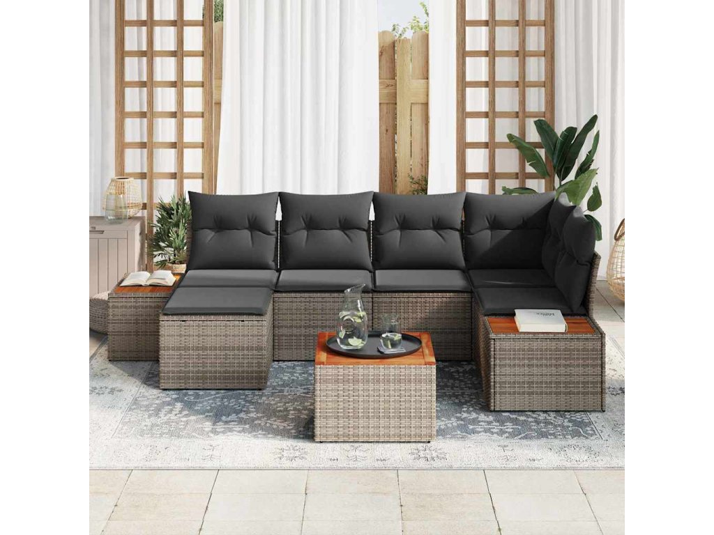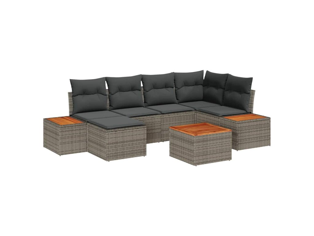 Sada zahradních pohovek s polštářem 7 pcs Šedá Poly Ratan