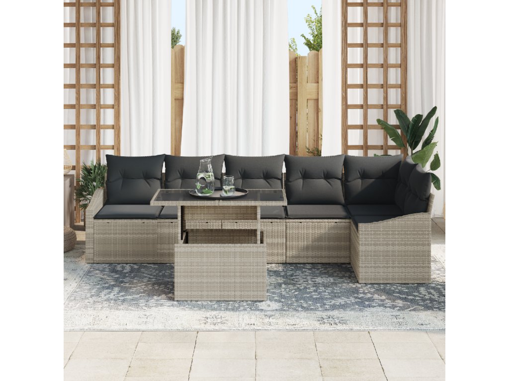 Sada zahradních pohovek s polštářem 7 pcs Světle šedá polyratan