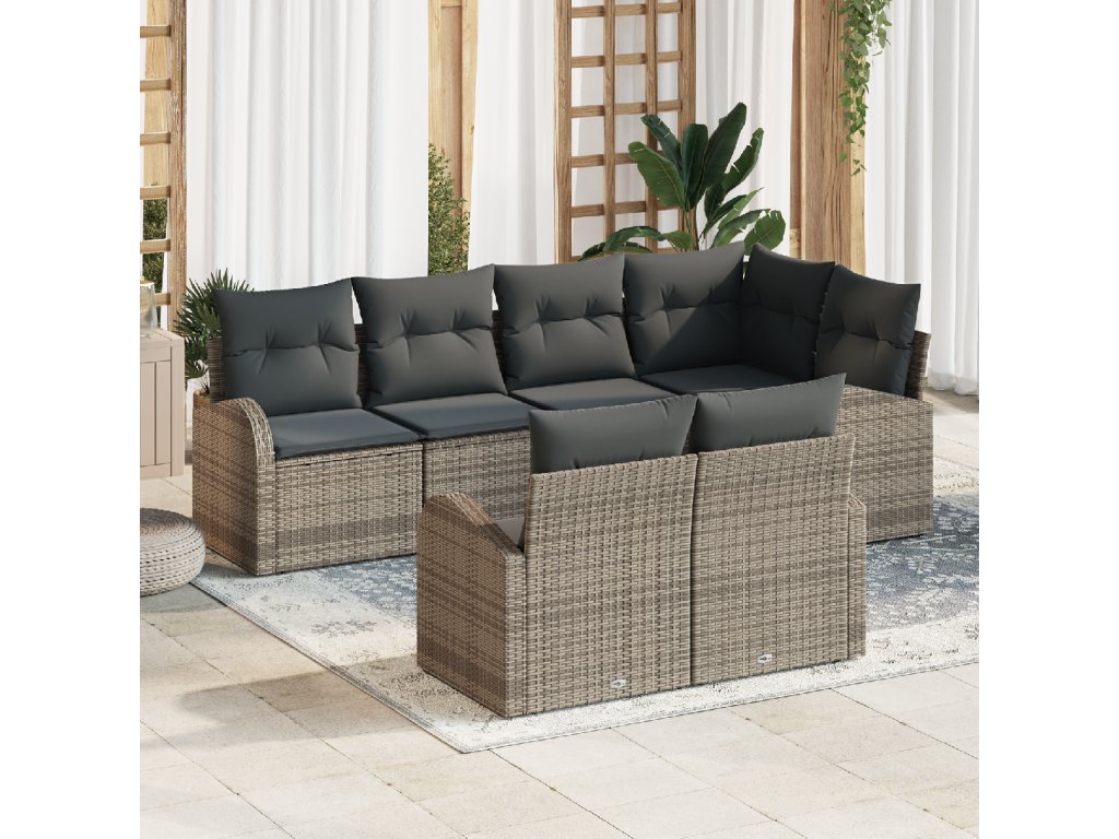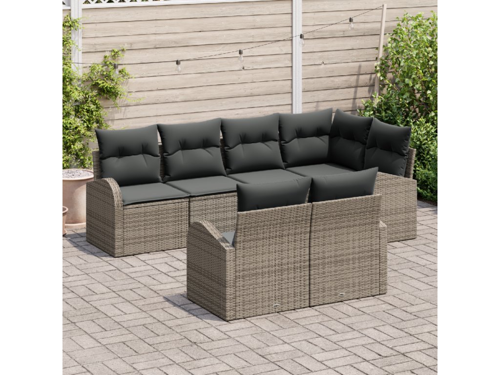 Sada zahradních pohovek s polštářem 7 pcs Šedá Poly ratan