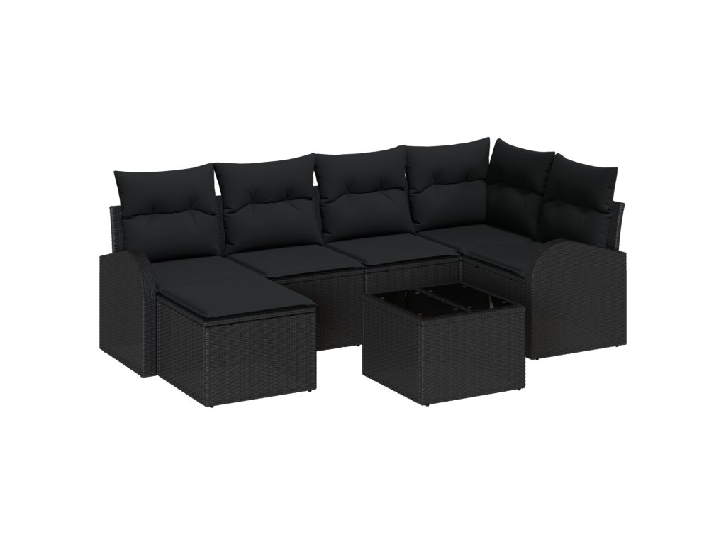 Set pohovek s polštářem s úložištěm 7 pcs Černá polyratan