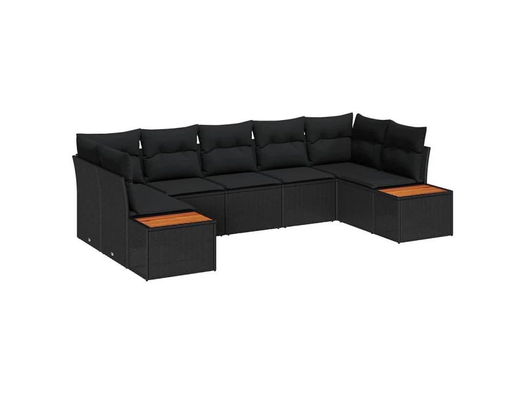 Sada zahradních pohovek s polštářem 7 pcs Černá Poly ratan