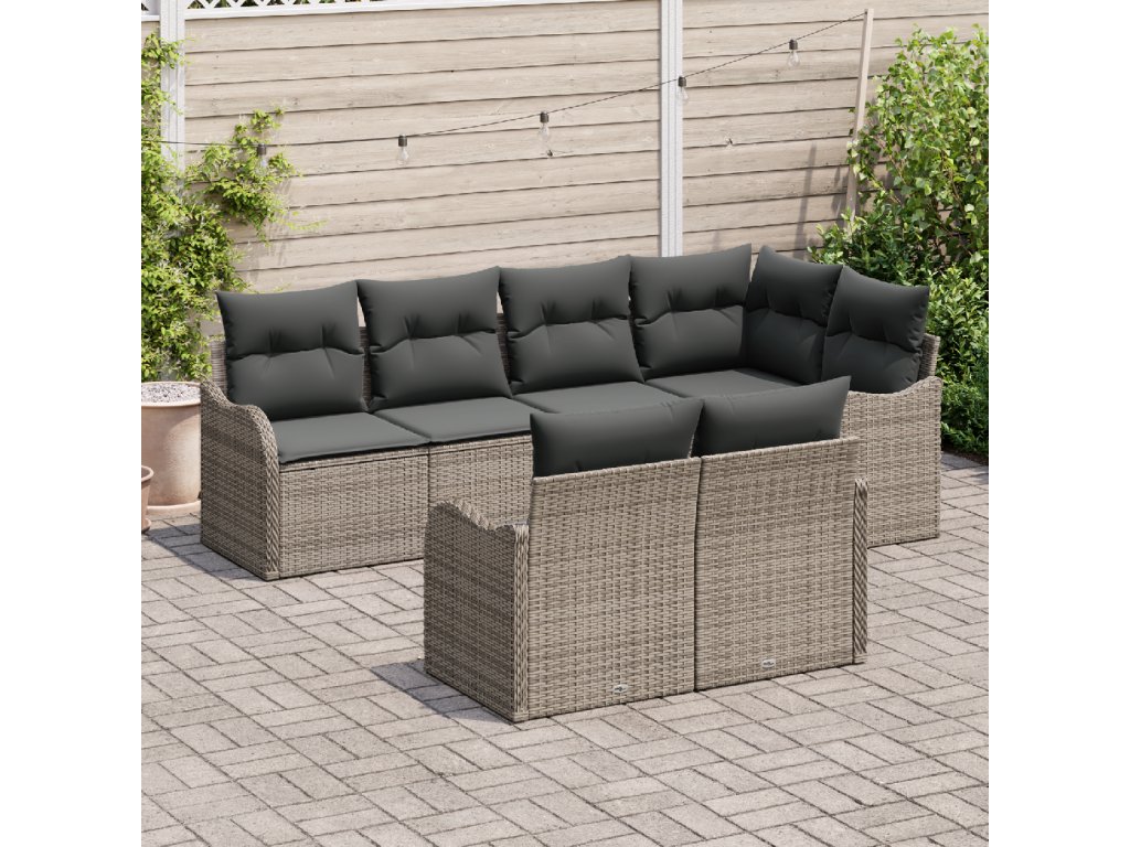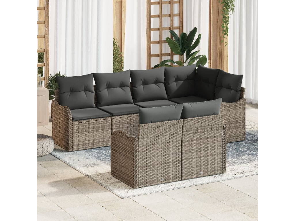 Sada zahradních pohovek s polštářem 7 pcs Šedá Poly ratan