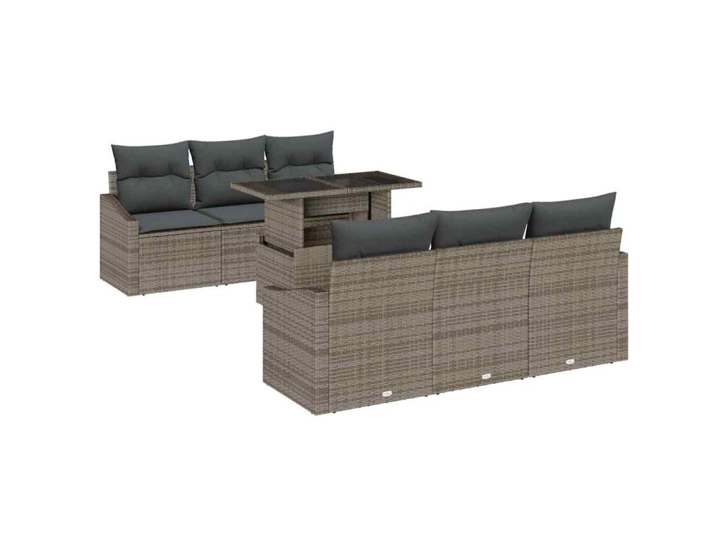 Sada zahradních pohovek s úložištěm 7 pcs Šedá Poly ratan