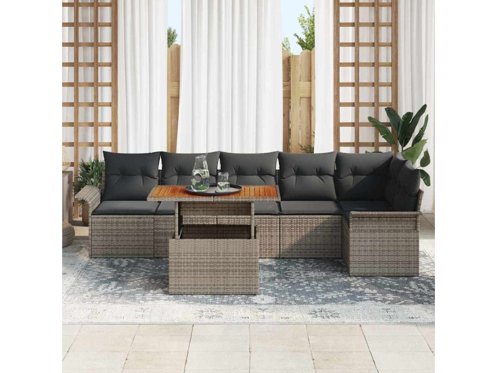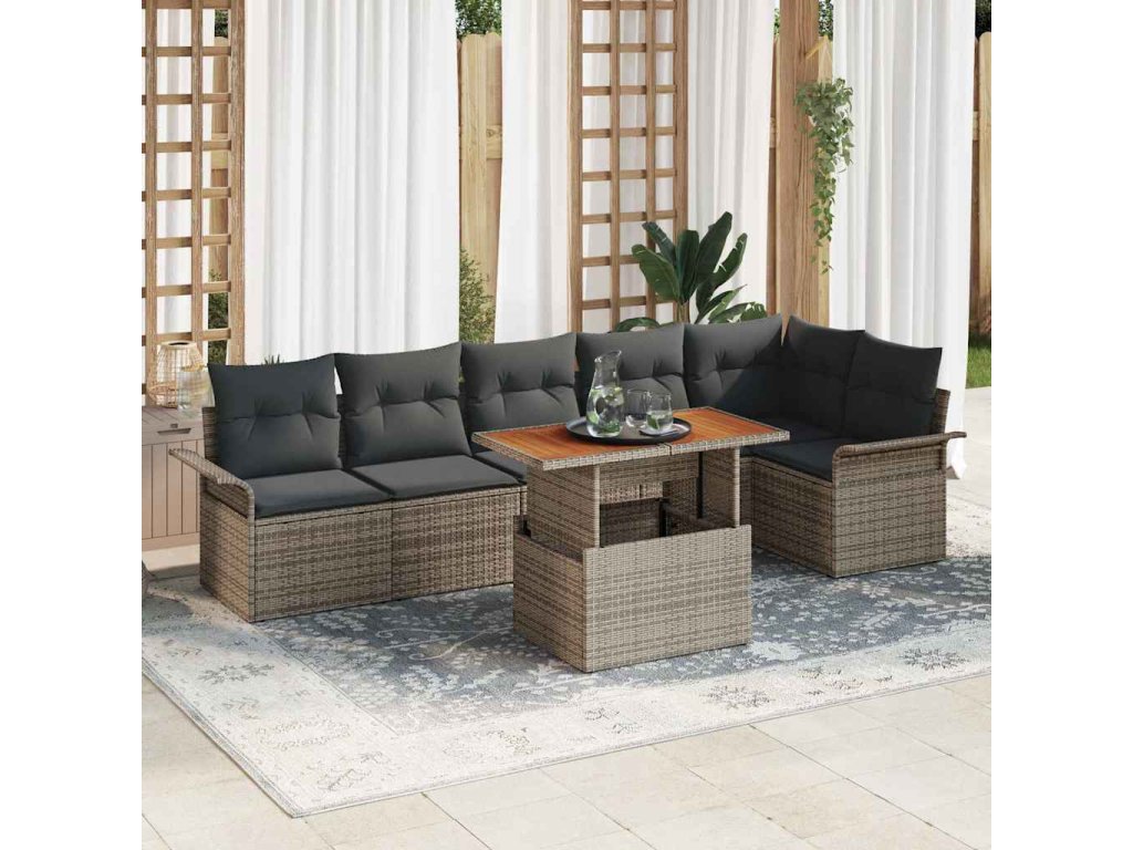 Sada zahradních pohovek s úložištěm 7 pcs Šedá Poly ratan