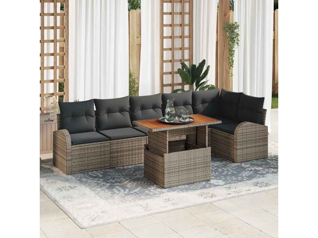 Sada zahradních pohovek s úložištěm 7 pcs Šedá Poly ratan
