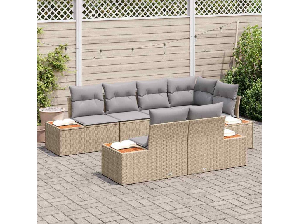 Sada zahradních pohovek 7 pcs béžová a světle šedá Poly ratan