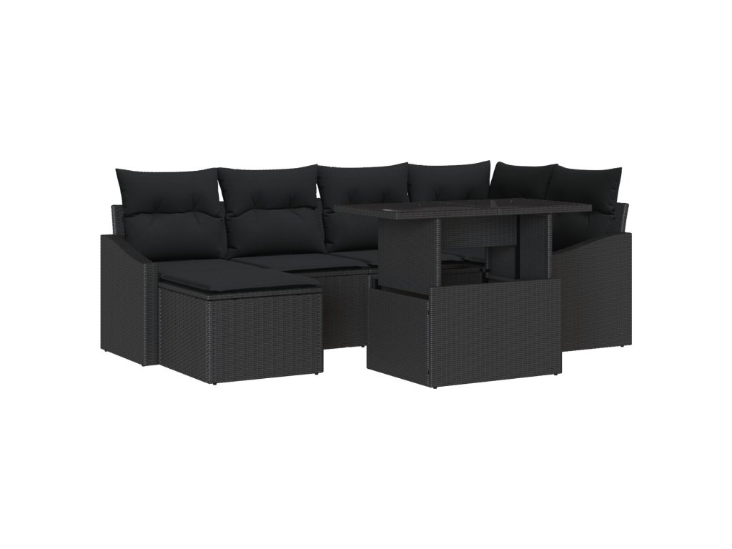 Sada zahradních pohovek s polštářem 7 pcs Černá