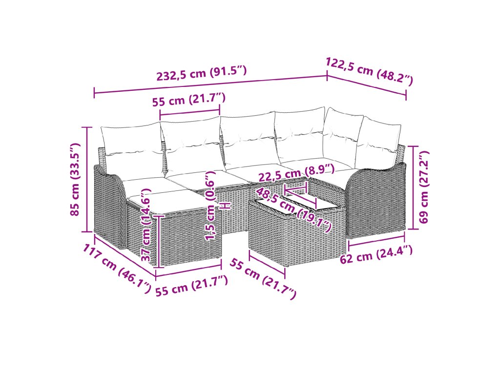 Sada zahradních pohovek 7 pcs Světle šedá polyratan
