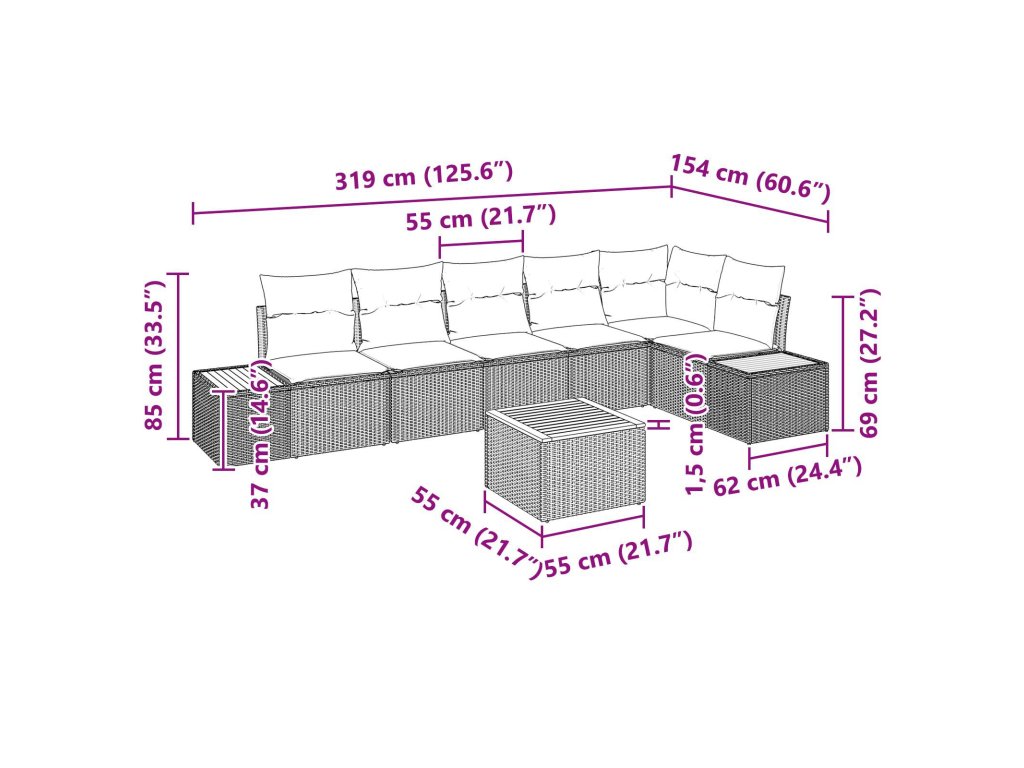 Sada zahradních pohovek s polštářem 7 pcs Šedá Poly ratan