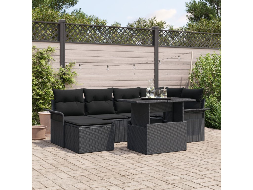 Sada zahradních pohovek s polštářem 7 pcs Černá Poly ratan