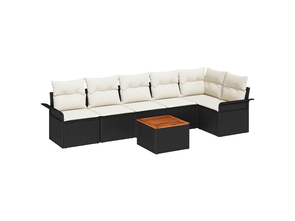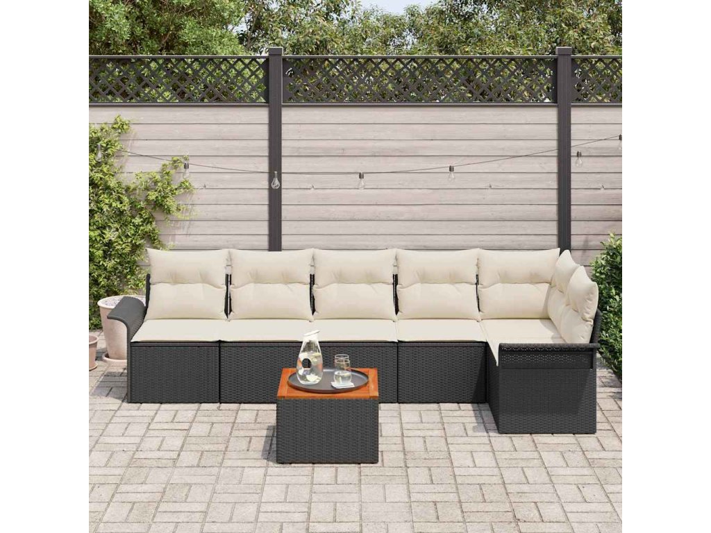 Sada zahradních pohovek s polštářem 7 pcs Černá a krémová