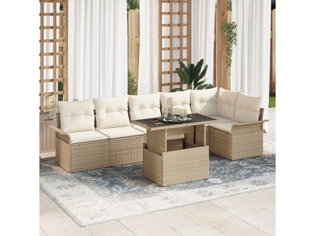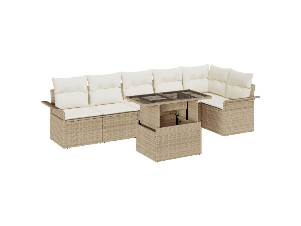 Sada zahradních pohovek s polštářem 7 pcs Béžová Poly ratan