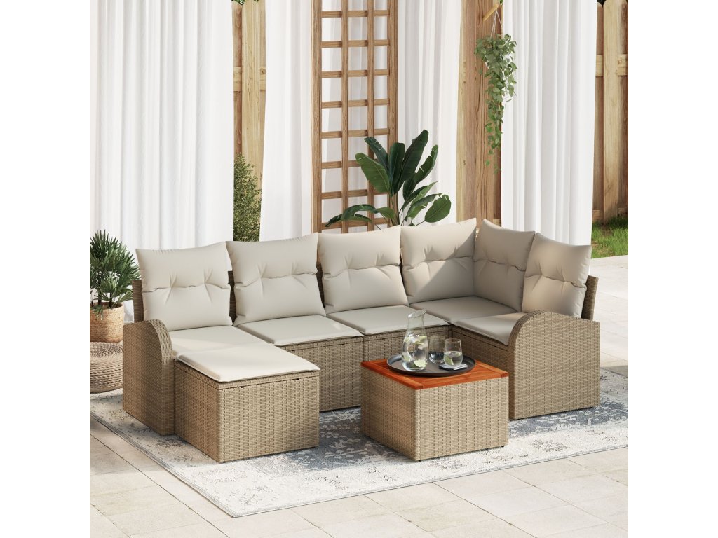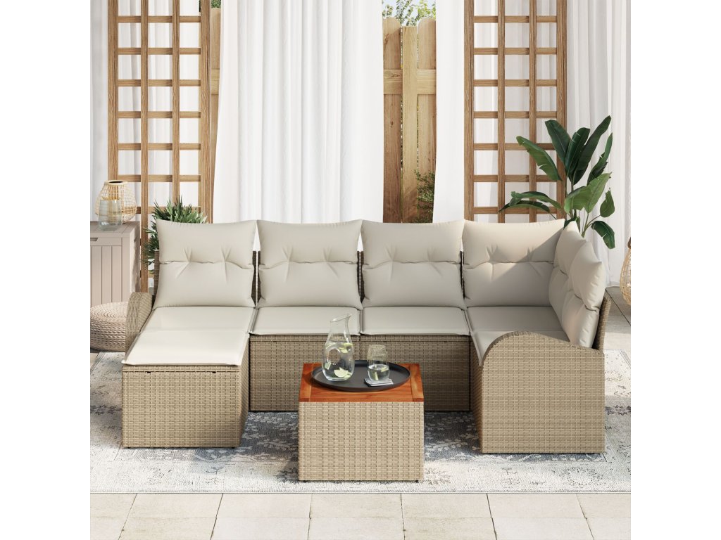 Sada zahradních pohovek 7 pcs Béžová Poly ratan
