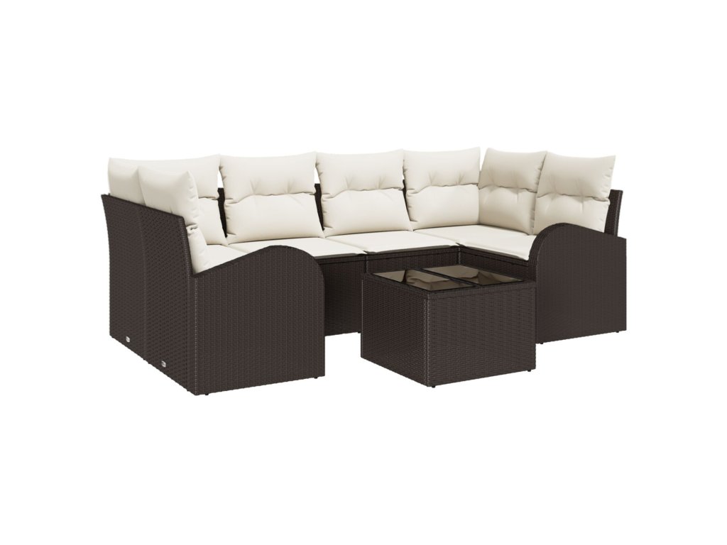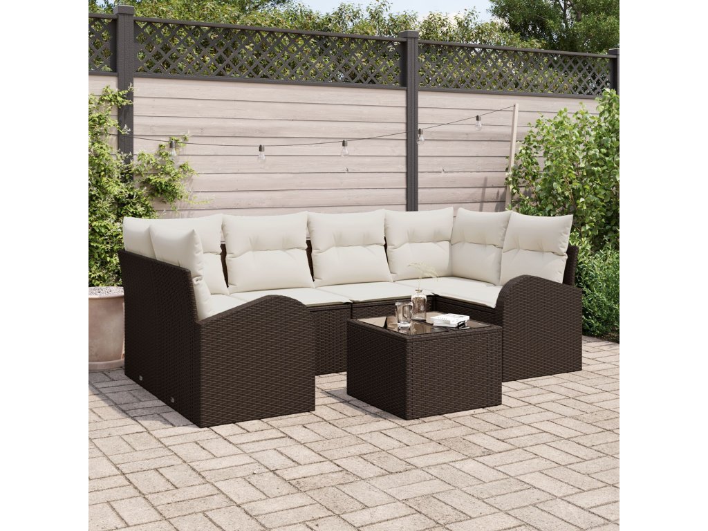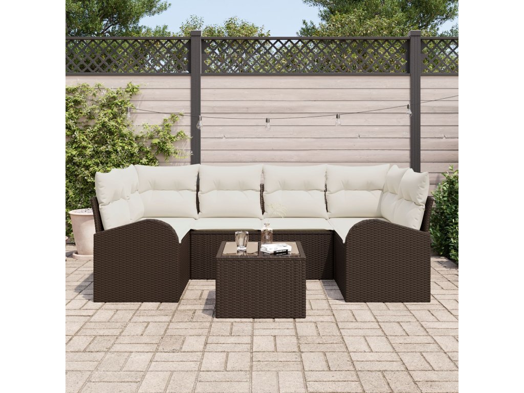 Materiály: Zahradní pohovka je primárně z poly ratanu, známého svou odolností a cool vzhledem. Tento materiál podporuje pohodlné a trvanlivé potahy, přičemž je lehký a snadno ho převezeš. Přídavný materiál je polyester, který poskytuje měkké a příjemné povrchy pro maximální pohodlí při každém sezení. Součásti: Sada obsahuje: dvě rohové sedačky, dvě středové sedačky, dvě pohovky s opěrkami a jeden stůl, všechny s tvrzeným sklem. Konstrukce má ocelové rámy, které zajišťují stabilitu a sílu, zatímco poly ratanové opěradla a loketní opěrky dávají dobrou podporu pro dlouhé sezení. Vlastnosti / Funkce / Design: S modulárním designem si můžeš uspořádat sedadla podle svých představ. Doplňují to UV-odolné materiály, které odolávají slunce, a dlouhotrvající polyesterové potahy, které lze snadno sundat a prát pro rychlou údržbu. Doporučené použití: Určeno pro venkovní použití, souprava je ideální pozadí pro zahrady, terasy a verandy. Jejím flexibilním designem si uděláš pohodlí při neformálních setkáních, osamělé chvilce s knihou nebo při slunění – prostě ideální k rychlým letním zábavám. Údržba: Aby souprava vydržela co nejdéle, pravidelně ji otírej vlhkým hadříkem a zakrývej ji, když je nevyužitá, abys ji ochránil před počasím. Skládací a odolné povrchy dovolují jednoduché čištění, takže zůstane v top stavu rok co rok.- Barva: Hnědá