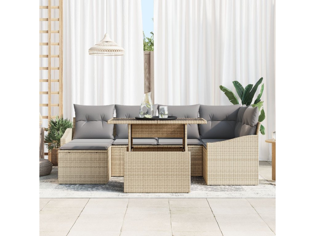 Sada zahradních pohovek s polštářem 7 pcs béžová a světle šedá