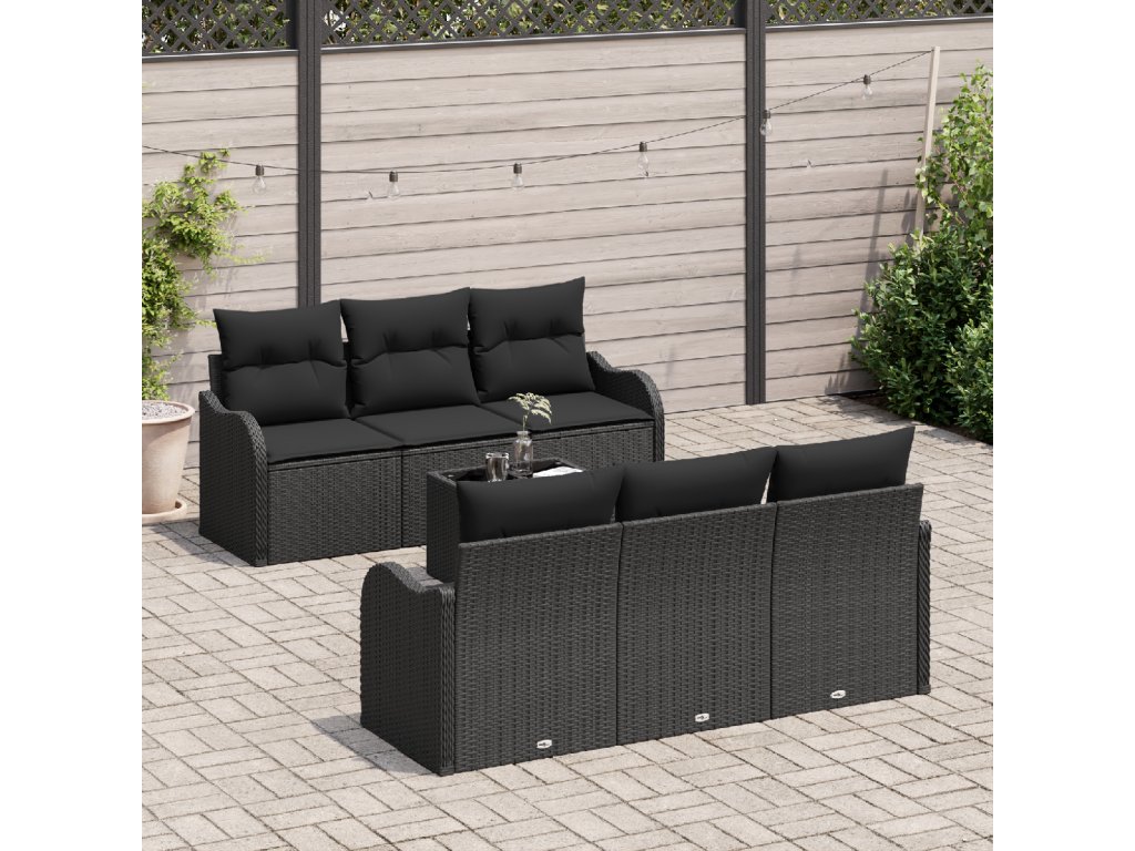 Sada zahradních pohovek 7 pcs Černá Poly ratan a ocel a sklo
