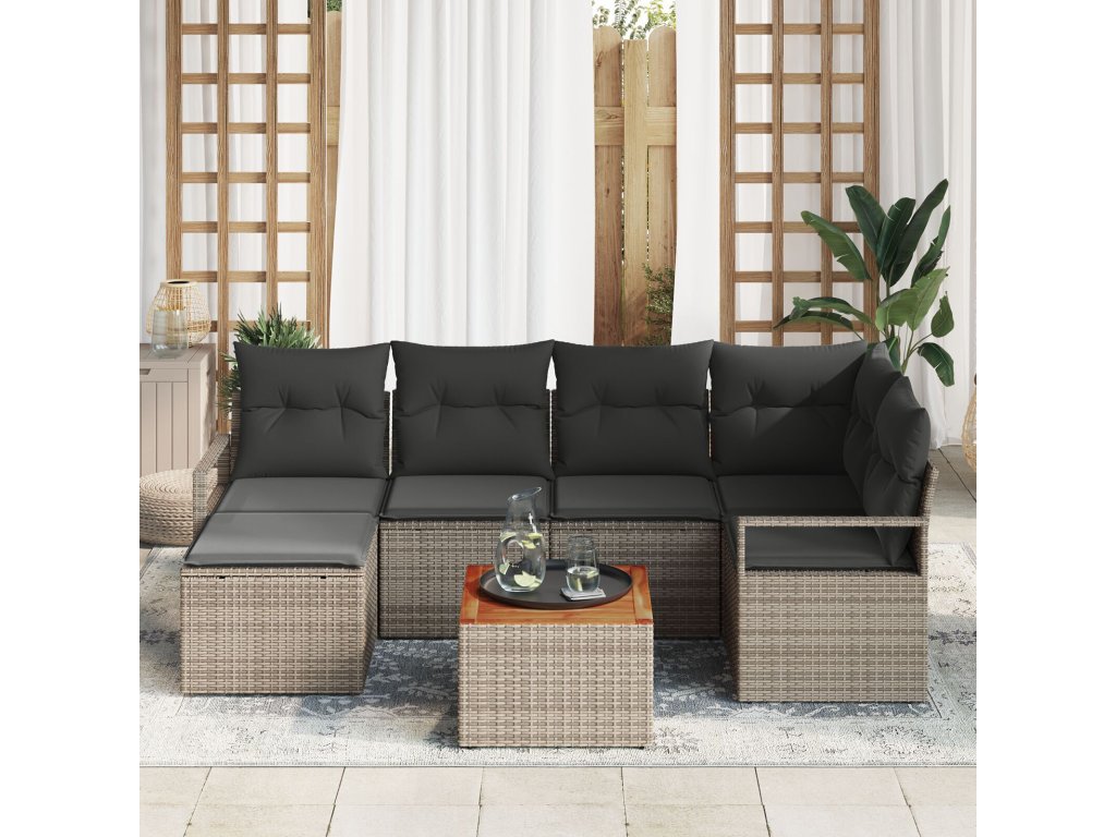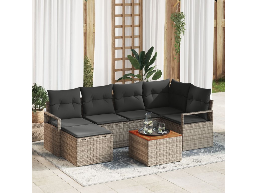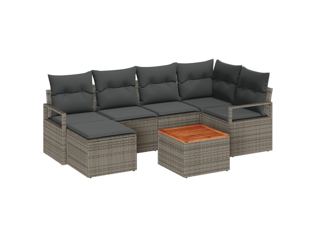 Sada zahradních pohovek s polštářem 7 pcs Šedá Poly ratan