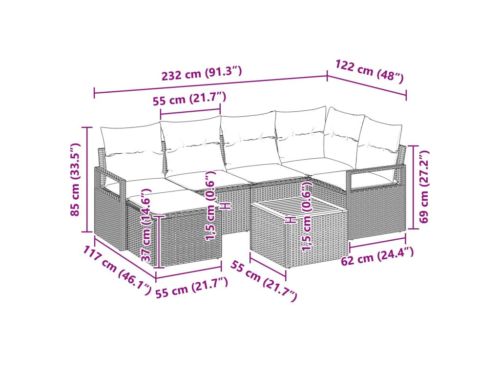 Modulární design: Chytrá konstrukce ti umožní měnit uspořádání, takže se přizpůsobíš svým potřebám nebo prostoru. Odolný materiál: Ručně vyráběný přírodní ratan vypadá skvěle a vydrží všechno, suitable for co mu počasí naservíruje. Odolnost vůči počasí: Tento set je navržený pro venkovní podmínky, takže vypadá skvěle po celý rok. Pohodlné sezení: Každý kus má polstrovaná sedadla, díky kterým si užiješ jídlo v pohodlí. Nastavitelné nožičky: Díky nastavitelným nožičkám set zůstává stabilní i na nerovném povrchu, takže můžeš jíst bezpečně a pohodlně.- Barva: Šedá
