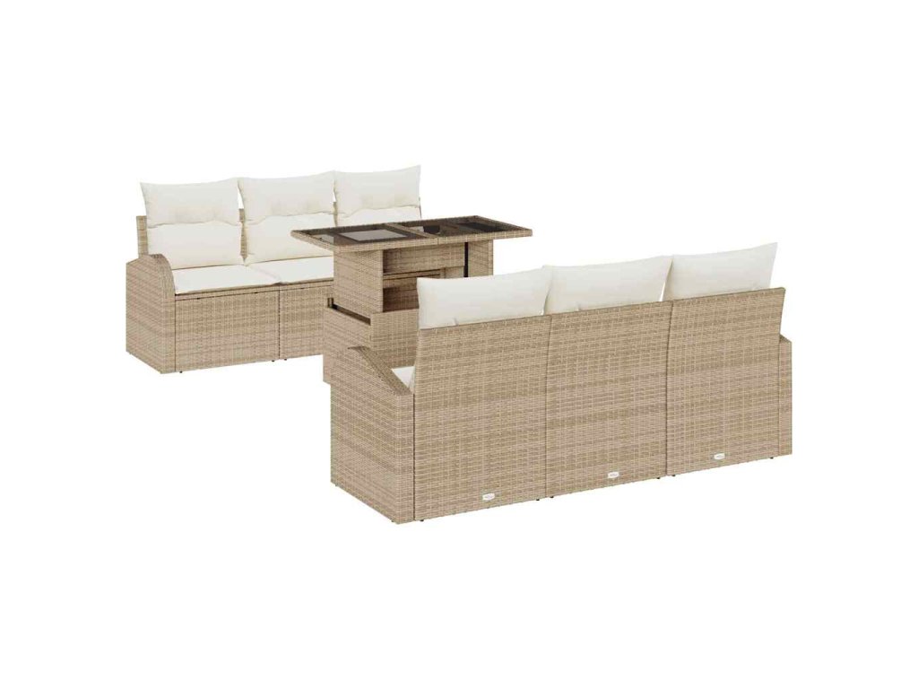 Sada zahradních pohovek s polštářem 7 pcs Béžová Poly Ratan