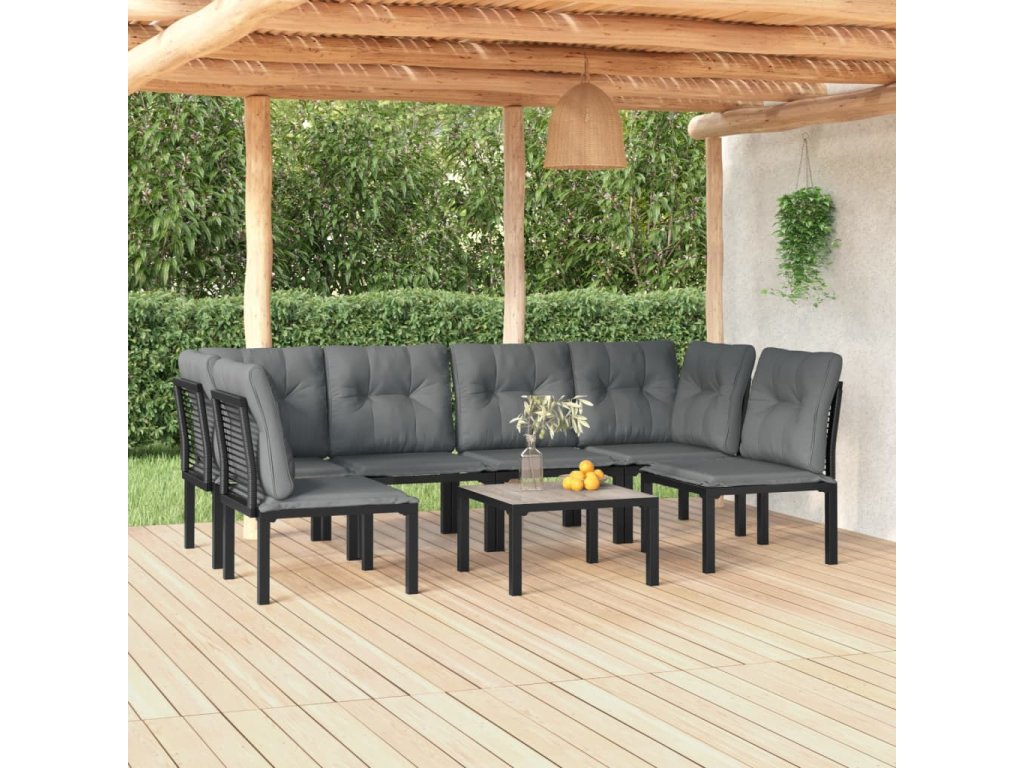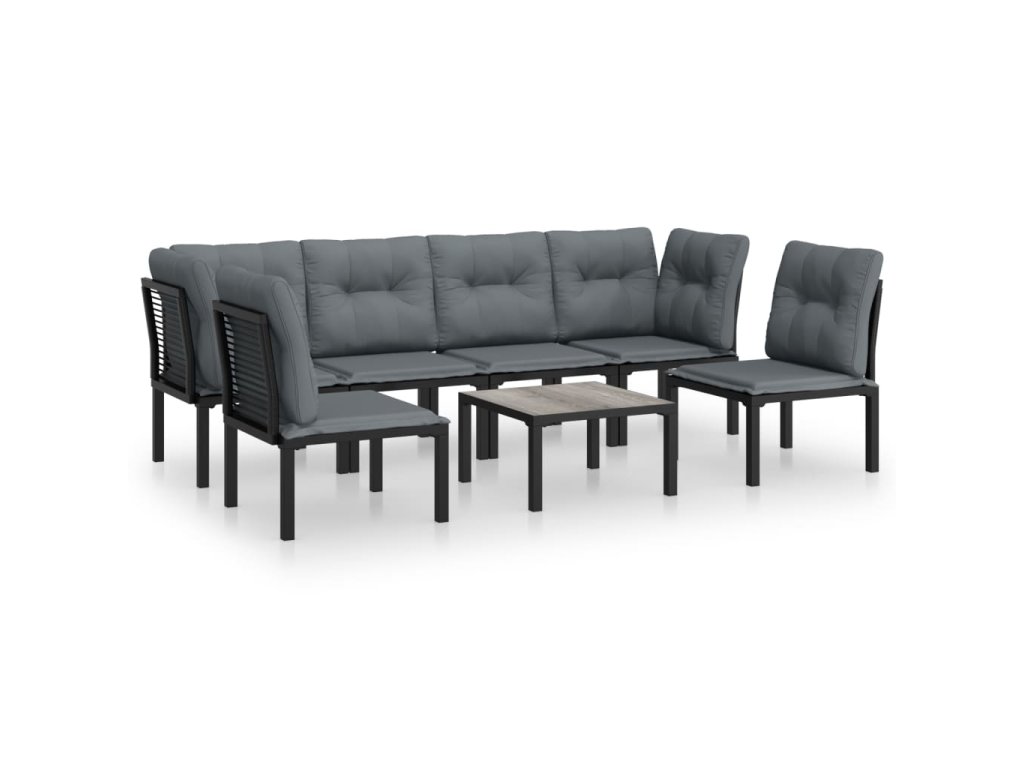 7dílná zahradní sedací souprava černá a šedá polyratan