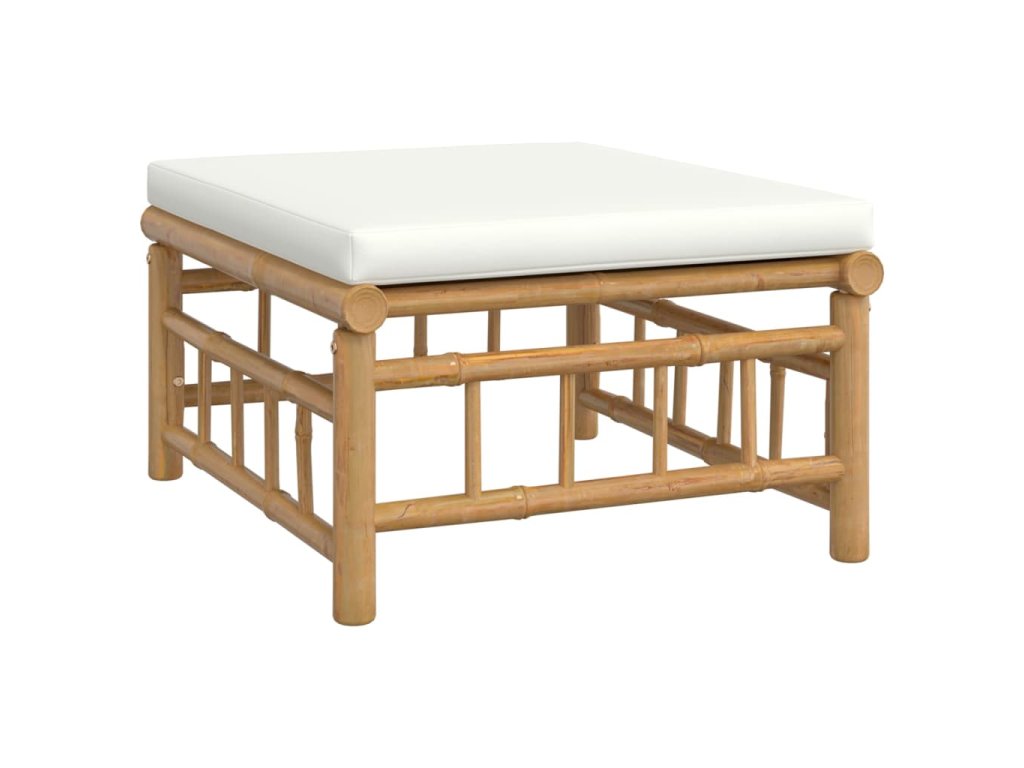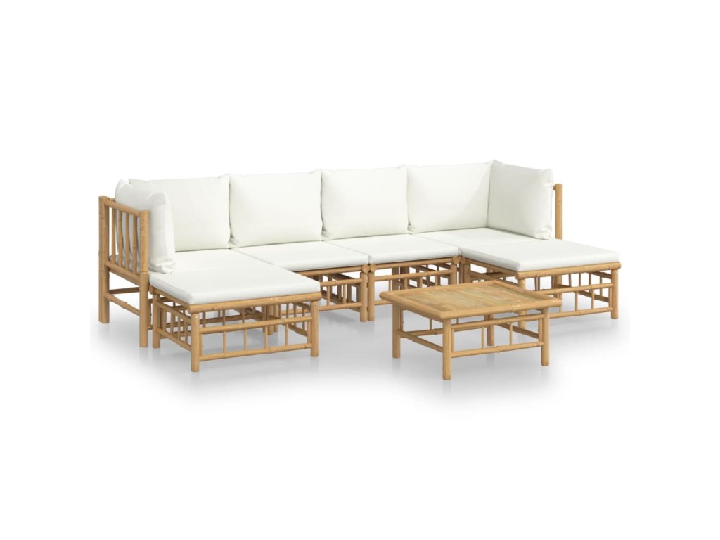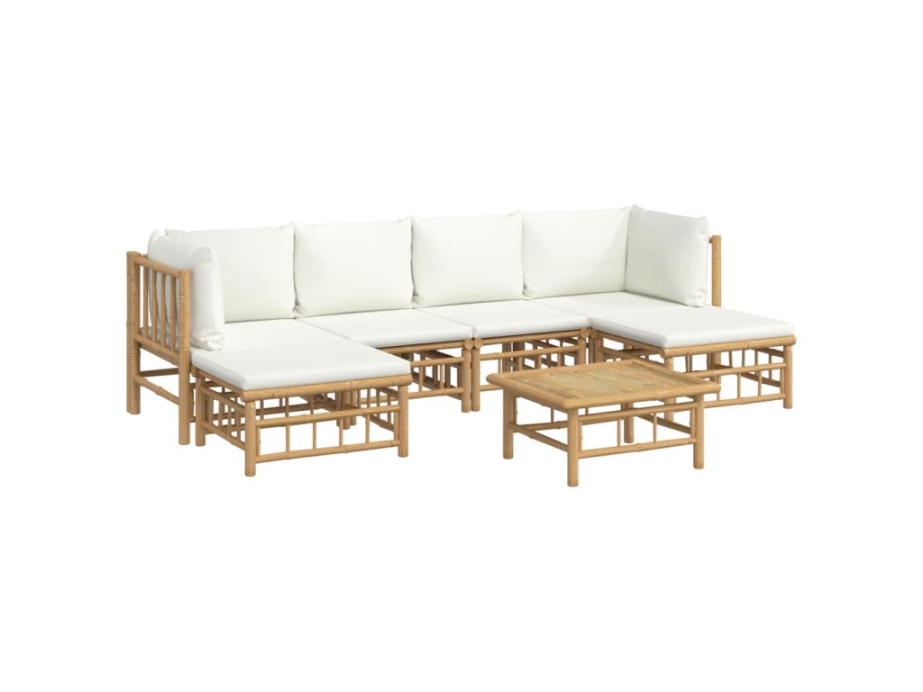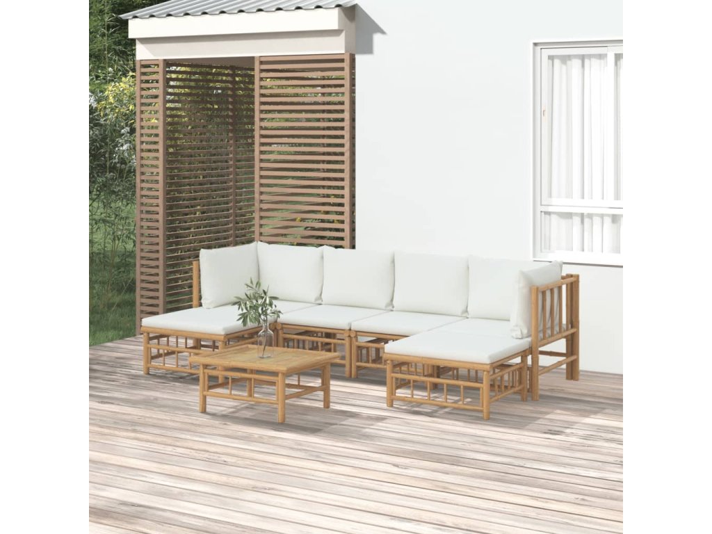 7dílná zahradní sedací souprava krémově bílé podušky bambus