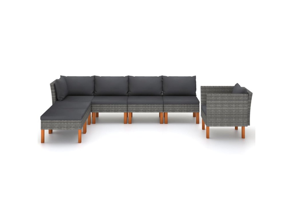 7dílná zahradní sedací souprava polyratan a eukalyptus šedá