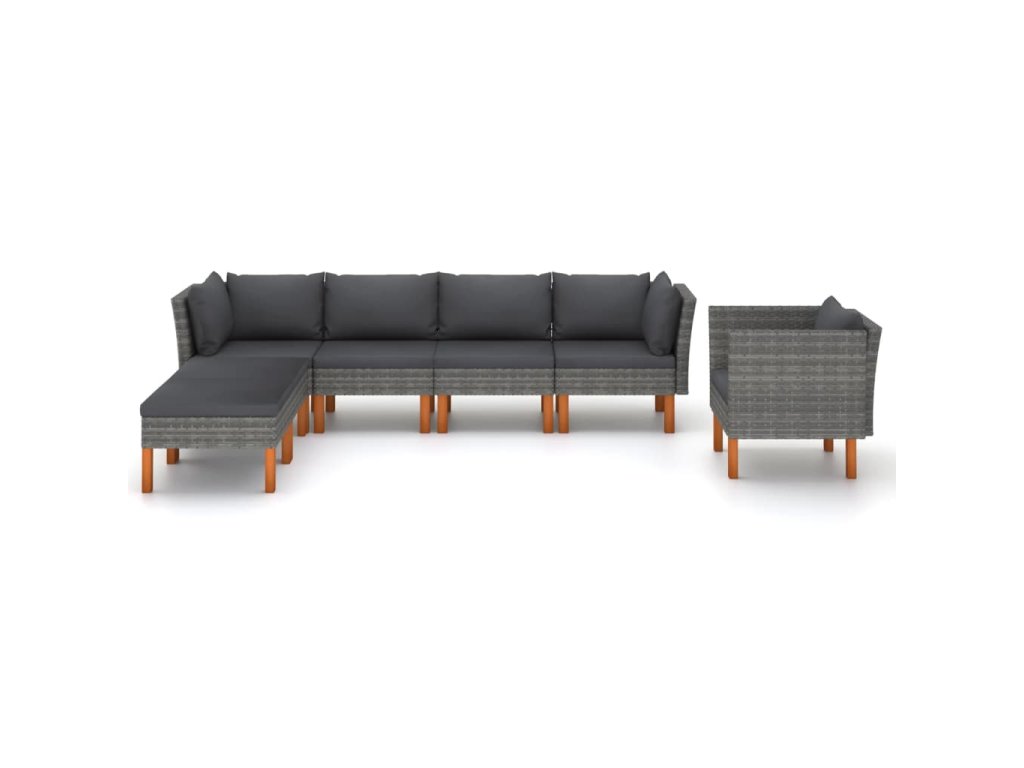 7dílná zahradní sedací souprava polyratan a eukalyptus šedá