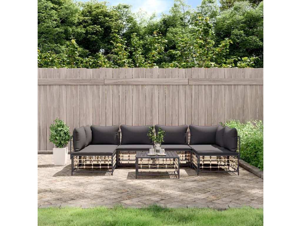 7dílná zahradní sedací souprava s poduškami antracit polyratan
