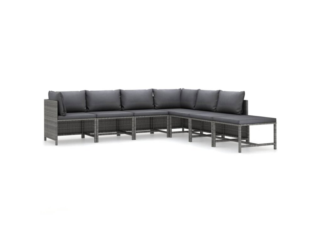 7dílná zahradní sedací souprava s poduškami polyratan šedá