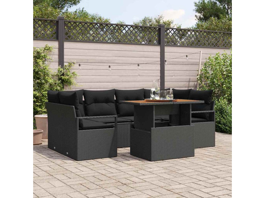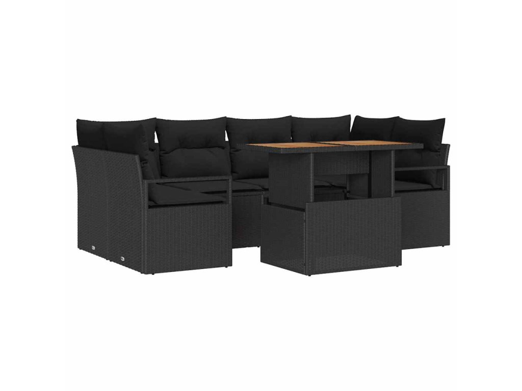 Sada zahradních pohovek s úložištěm 7 pcs Černá Poly ratan