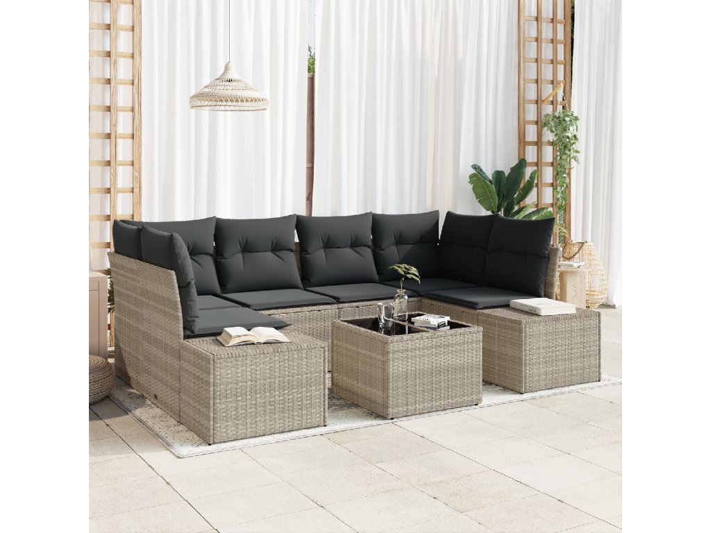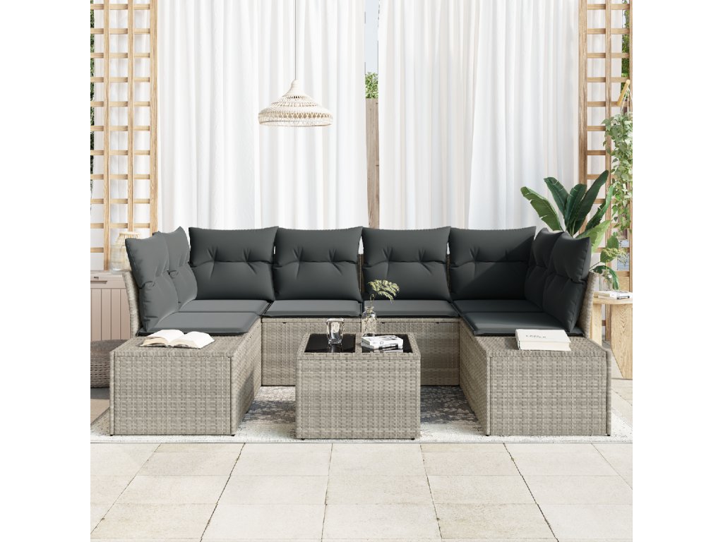 Sada zahradních pohovek s polštářem 7 pcs Světle šedá polyratan
