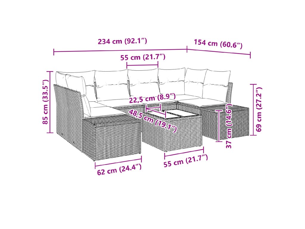 Materiály: Polyratan zaručuje dlouhou životnost a atraktivní vzhled. Je odolný vůči venkovním podmínkám a lehký, což usnadňuje manipulaci. Práškově lakovaný ocelový rám zajišťuje pevnost a stabilitu, takže set vydrží roky. Materiály spojují elegance a praktickou funkčnost. Součásti: Set obsahuje pohodlné polyesterové polštáře a odolné polyratanové opěradlo pro dobrou podporu. Opěrky rukou zvyšují komfort a příjemně se opírají. Stůl ze tvrzeného skla dodává moderní vzhled a praktičnost. Vlastnosti / Funkce / Design: Modulární design umožňuje snadnou změnu uspořádání podle vašich potřeb. Lehká konstrukce usnadňuje přeuspořádání. Materiály odolné proti UV záření chrání barvy a vzhled po mnoho let. Doporučené použití: Skvěle se hodí pro venkovní použití, ideální na zahrady a terasy, stává se středem pozornosti při odpočinku nebo společenských setkáních. Přizpůsobí se jakýmkoli akcím, ať už jde o venkovní party nebo klidný večer. Péče a údržba: Udržujte ho v dobrém stavu pravidelným otíráním povrchů měkkým hadříkem. Doporučuje se používat ochranný kryt při nepříznivém počasí. Sedací polštáře se snadno čistí, stačí je vyprat v šetrném cyklu.- Barva: Světle šedá