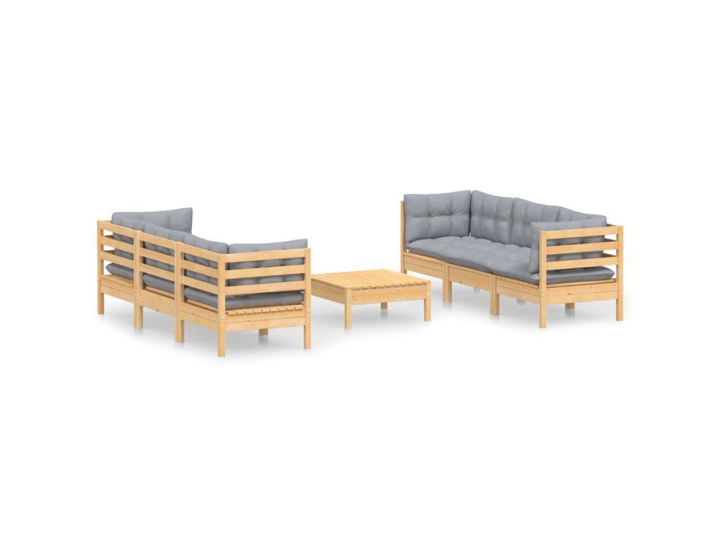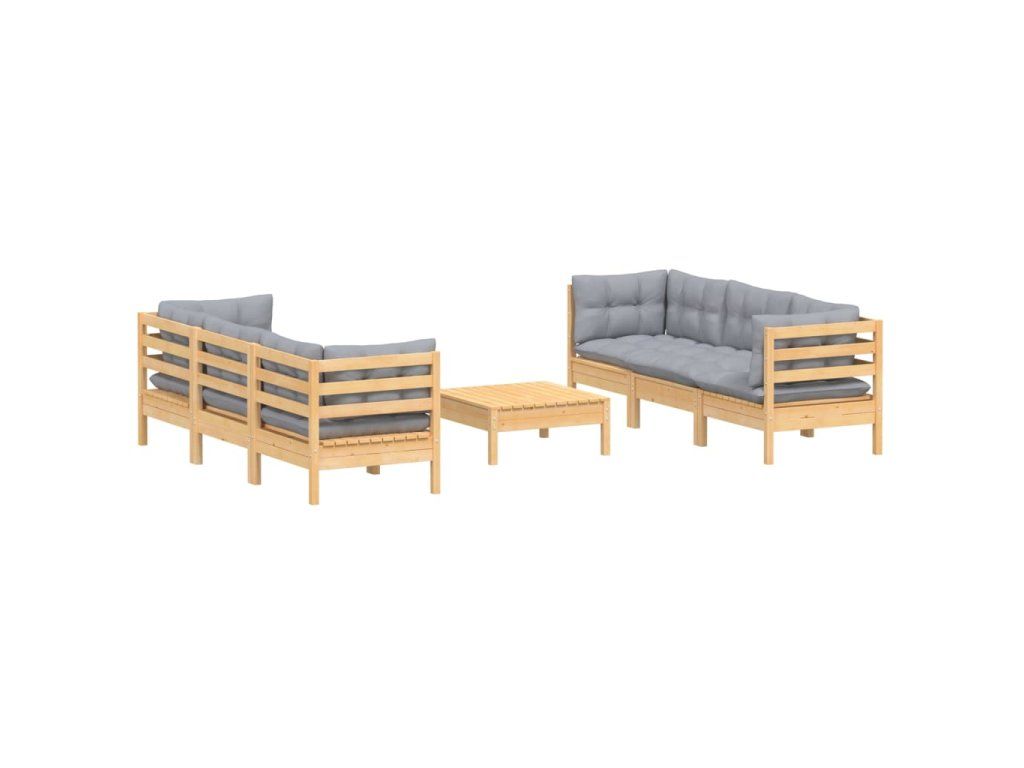 7dílná zahradní sedací souprava s šedými poduškami borovice 3096117