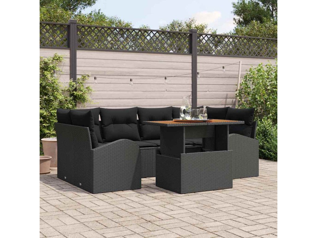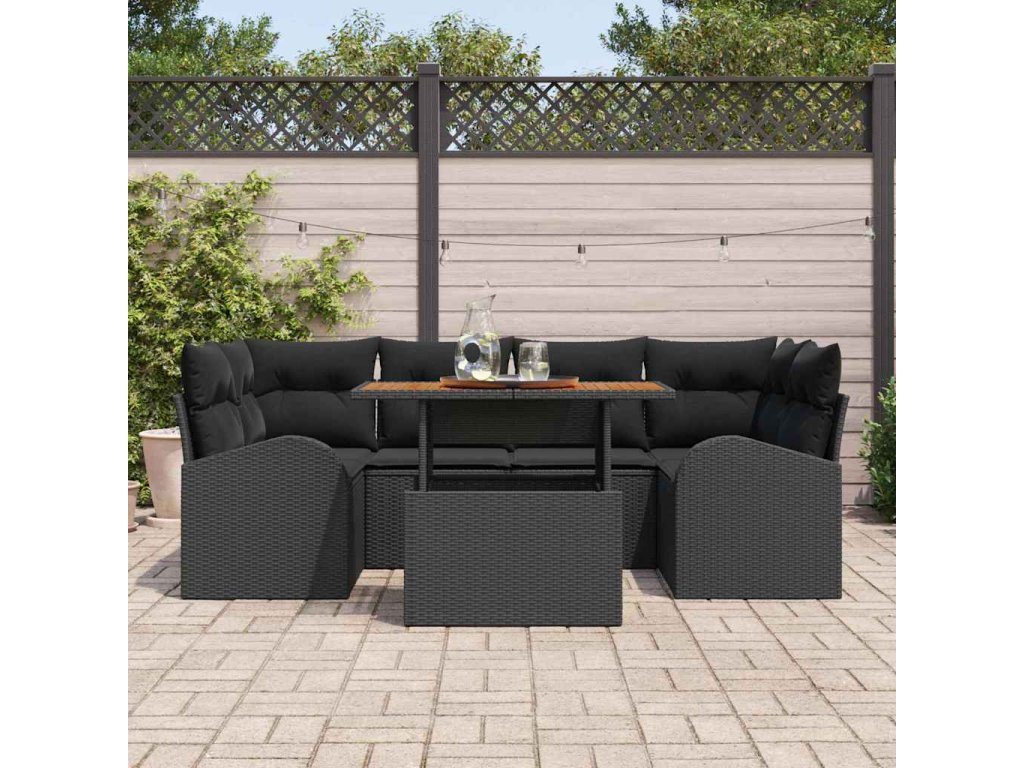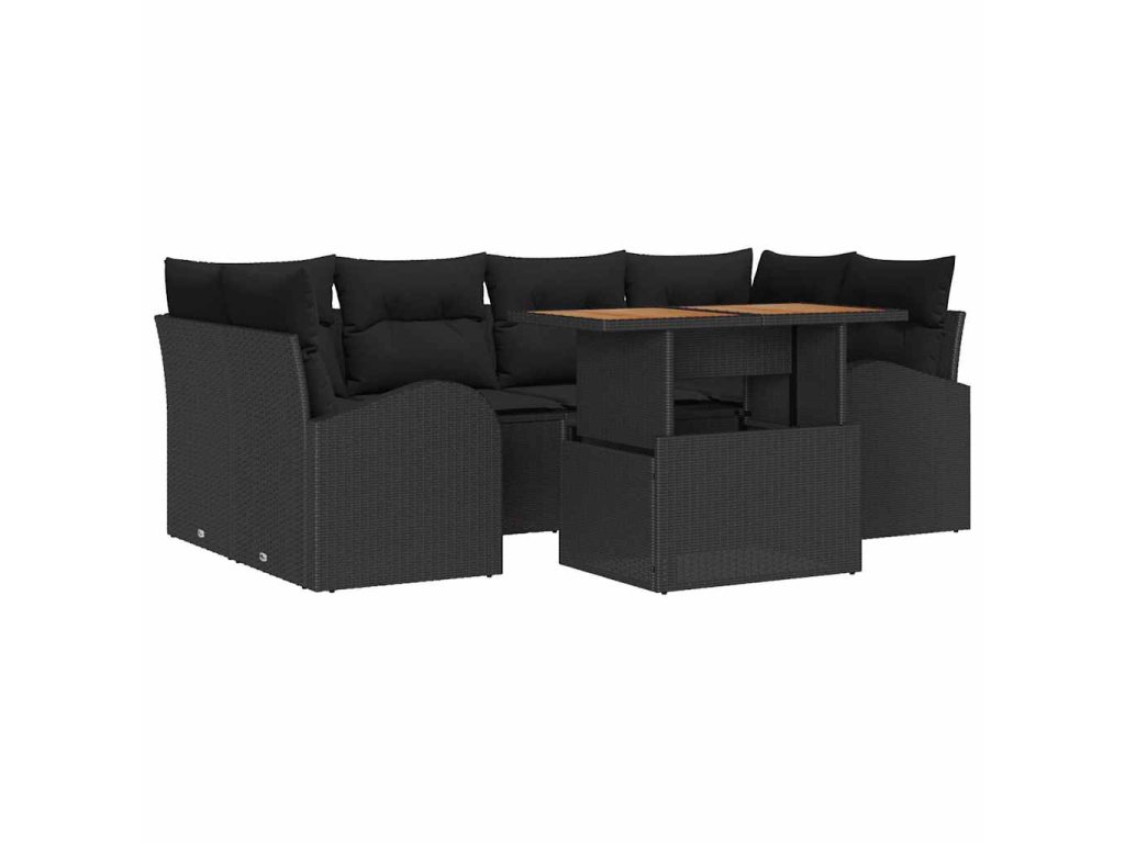 Sada zahradních pohovek s úložištěm 7 pcs Černá Poly ratan
